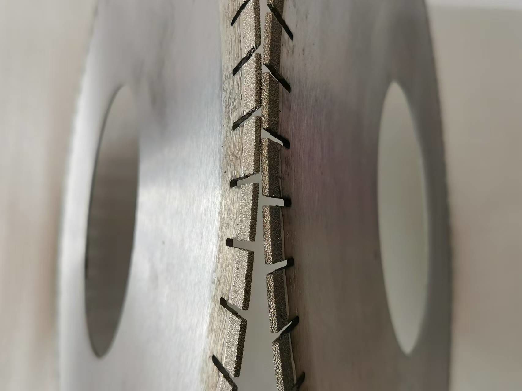 ডায়মন্ড ব্লেডগুলি খুব সীমিত চিপিংয়ে মার্বেল এবং গ্রানাইট দ্রুত কাটার জন্য ডিজাইন করা হয়েছে। সেগমেন্টগুলি ঠান্ডা প্রেসে পুনরায় চাপানো হয় এবং তারপরে গরম প্রেসে সিন্টার করা হয়,এই প্রক্রিয়াটি শক্তিশালী হোল্ড ডায়মন্ডের জন্য উচ্চ ঘনত্বের অংশগুলি দেয় এবং এইভাবে ফলকগুলিকে আরও ভাল পারফরম্যান্স এবং দীর্ঘায়ু দেয়.